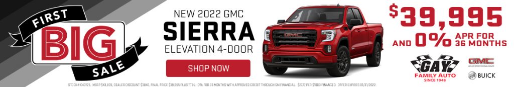 - 2022 GMC Sierra Elevation 4 Door – $39,995 and 0% APR up to 36 months