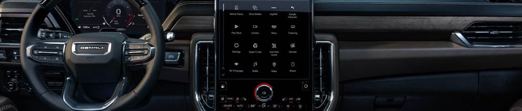 The Yukon XL’s center touchscreen is an easy-to-read, high-contrast display with local blacklight dimming. It measures 16.8 inches diagonally. Using the system is a breeze thanks to familiar features like Google built-in that let you use your existing account, wireless Apple CarPlay and Android Auto providing you with access to your favorite apps, and natural voice recognition allowing you to operate the system hands-free.