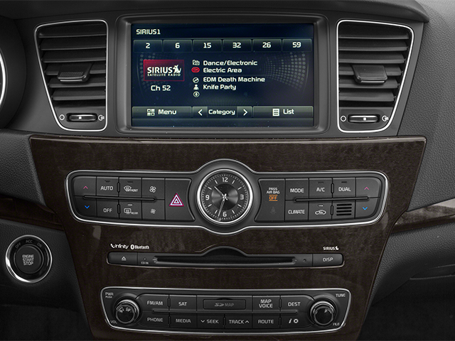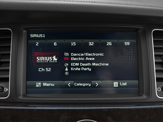 - Radio: INFINITI Audio System w/AM/FM/CD/MP3/NAV -inc: 8" display, SiriusXM Radio, Sirius Traffic, UVO eServices Telematics, 550 watt, USB/auxiliary input jacks, 12 speakers including surround sound and subwoofer and Bluetooth® wireless technology w/audio streaming and steering-wheel-mounted controls