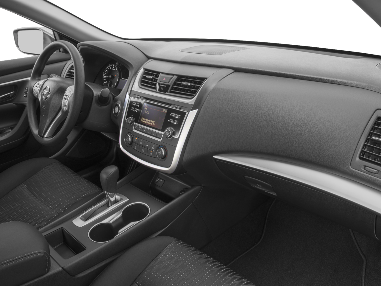 Super Black Clearcoat 2017 Nissan Altima 2.5 S FWD CVT with Xtronic 2.5L 4-Cylinder DOHC 16V Power Driver Seat Package, CVT with Xtronic, 16 x 7.0 Steel w/Full Covers Wheels, 4-Wheel Disc Brakes, 6 Speakers, ABS brakes, Air Conditioning, AM/FM radio, AM/FM/CD/MP3 Audio System, Brake assist, Bumpers: body-color, CD player, Cloth Seat Trim, Delay-off headlights, Driver door bin, Driver vanity mirror, Dual front impact airbags, Dual front side impact airbags, Electronic Stability Control, Floor Mats Plus Trunk Mat (5-Piece Carpeted), Four wheel independent suspension, Front anti-roll bar, Front Bucket Seats, Front Center Armrest w/Storage, Front reading lights, Fully automatic headlights, Illuminated entry, Low tire pressure warning, Occupant sensing airbag, Outside temperature display, Overhead airbag, Overhead console, Panic alarm, Passenger door bin, Passenger vanity mirror, Power door mirrors, Power steering, Power windows, Radio data system, Rear anti-roll bar, Rear reading lights, Rear seat center armrest, Rear window defroster, Remote Engine Start, Remote keyless entry, Security system, Speed control, Speed-sensing steering, Speed-Sensitive Wipers, Splash Guards, Split folding rear seat, Steering wheel mounted audio controls, Tachometer, Telescoping steering wheel, Tilt steering wheel, Traction control, Trip computer, and Variably intermittent wipers. CVT with Xtronic. Recent Arrival!