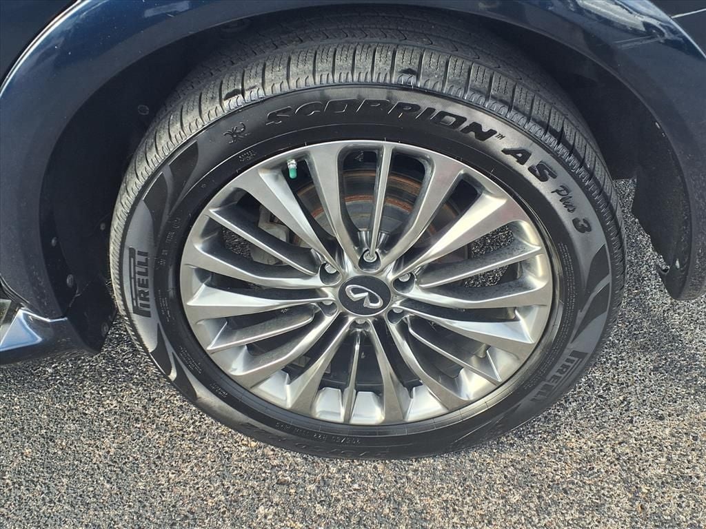 Blue 2019 INFINITI QX80 LUXE RWD 7-Speed Automatic 5.6L V8 22 Wheel Package (Wheels: 22 x 8.0 14-Spoke Forged Aluminum-Alloy), Cargo Package (First-Aid Kit, High-Density Non-Slip Rear Cargo Carpet, and Nylon-Cord Cargo Net), ProASSIST Package (Backup Collision Intervention (BCI), Blind Spot Intervention (BSI), Blind Spot Warning, Intelligent Cruise Control (Full-Speed Range), and Lane Departure Warning System), Sensory Package (Advanced Climate Control System, Bose Cabin Surround Sound System, Charcoal/Espresso Burl Trim, Chrome Outside Mirror Caps, Climate-Controlled Front Seats, Heated 2nd-Row Seats, and Semi-Aniline Leather-Appointed Seating w/Quilting), Theater Package (120V Power Outlet, Dual 8 Color Monitors, and Wireless Headphones (2)), 13 Speakers, 2.94 Axle Ratio, 3rd row seats: split-bench, 4-Wheel Disc Brakes, ABS brakes, Air Conditioning, Alloy wheels, AM/FM radio: SiriusXM, Anti-whiplash front head restraints, Auto High-beam Headlights, Auto tilt-away steering wheel, Auto-dimming door mirrors, Auto-dimming Rear-View mirror, Auto-leveling suspension, Automatic temperature control, Brake assist, Bumpers: body-color, CD player, Delay-off headlights, Driver door bin, Driver vanity mirror, Dual front impact airbags, Dual front side impact airbags, DVD-Audio, Electronic Stability Control, Emergency communication system: INFINITI Connection, Four wheel independent suspension, Front anti-roll bar, Front Bucket Seats, Front Center Armrest, Front dual zone A/C, Front fog lights, Front reading lights, Fully automatic headlights, Garage door transmitter: HomeLink, Genuine wood console insert, Genuine wood dashboard insert, Genuine wood door panel insert, Heated door mirrors, Heated Front Bucket Seats, Heated front seats, Heated steering wheel, Illuminated entry, Leather Shift Knob, Leather steering wheel, Leather-Appointed Seats w/Stratford Burl Trim, Literature Kit, Low tire pressure warning, Memory seat, Navigation system: INFINITI InTouch Navigation, Occupant sensing airbag, Outside temperature display, Overhead airbag, Overhead console, Panic alarm, Passenger door bin, Passenger vanity mirror, Power door mirrors, Power driver seat, Power Liftgate, Power moonroof, Power passenger seat, Power steering, Power windows, Radiant Illuminated Kick Plates, Radio data system, Radio: AM/FM/HD w/Single In-Dash CD/DVD Player & MP3, Rain sensing wipers, Rear air conditioning, Rear anti-roll bar, Rear audio controls, Rear reading lights, Rear seat center armrest, Rear window defroster, Rear window wiper, Reclining 3rd row seat, Remote keyless entry, Roof rack: rails only, Security system, Speed control, Speed-sensing steering, Split folding rear seat, Spoiler, Steering wheel memory, Steering wheel mounted audio controls, Tachometer, Telescoping steering wheel, Tilt steering wheel, Traction control, Trip computer, Turn signal indicator mirrors, Variably intermittent wipers, Voltmeter, and Wheels: 20 x 8.0 Aluminum-Alloy. Recent Arrival!
