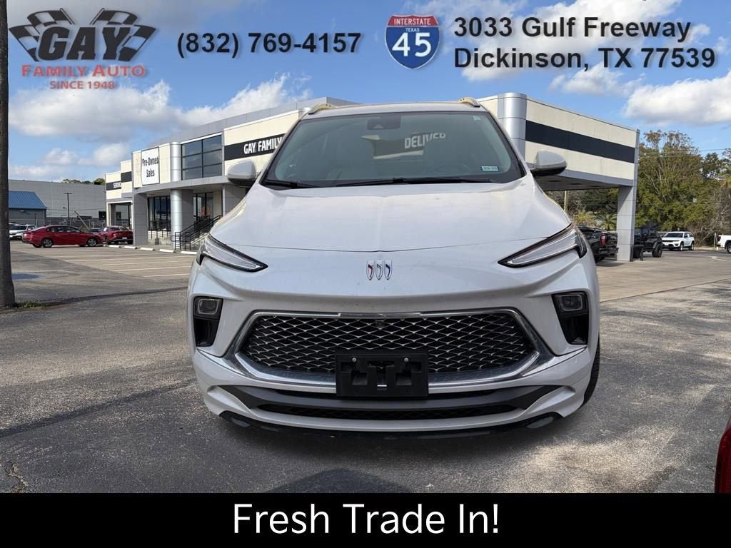 CARFAX One-Owner. Clean CARFAX. Certified. Summit White 2023 Buick Encore GX Preferred AWD 9-Speed Automatic ECOTEC 1.3L Turbo Cold Weather Comfort Package (2-Way Power Driver Lumbar Control, 8-Way Power Driver Seat Adjuster, Heated Driver & Front Passenger Seats, and Remote Vehicle Starter System), Preferred Equipment Group 1SB, Buick Certified Pre-Owned Certified, 2 USB Ports w/Auxiliary Input Jack, 6 Speakers, Panic alarm, Security system, 3.17 Final Drive Axle Ratio, 4-Way Manual Passenger Seat Adjuster, 4-Wheel Disc Brakes, 6-Way Manual Driver Seat Adjuster, ABS brakes, Air Conditioning, All-Weather Floor Mats, Alloy wheels, AM/FM radio: SiriusXM, Auto High-beam Headlights, Automatic temperature control, Brake assist, Bumpers: body-color, Cloth w/Leatherette Seat Trim, Compass, Delay-off headlights, Driver door bin, Driver vanity mirror, Dual front impact airbags, Dual front side impact airbags, Electronic Stability Control, Emergency communication system: OnStar and Buick connected services capable, Enhanced Performance 6-Speaker System, Front anti-roll bar, Front Bucket Seats, Front Center Armrest, Front fog lights, Front License Plate Bracket, Front reading lights, Front wheel independent suspension, Fully automatic headlights, Heated door mirrors, Illuminated entry, Knee airbag, Low tire pressure warning, Occupant sensing airbag, Outside temperature display, Overhead airbag, Overhead console, Passenger door bin, Passenger vanity mirror, Power door mirrors, Power steering, Power windows, Radio data system, Radio: 8 Diagonal Buick Infotainment System, Rear reading lights, Rear side impact airbag, Rear window defroster, Rear window wiper, Remote keyless entry, Ride & Handling Suspension, SiriusXM Radio, Speed control, Speed-sensing steering, Split folding rear seat, Spoiler, Steering wheel mounted audio controls, Tachometer, Telescoping steering wheel, Tilt steering wheel, Traction control, Trip computer, Variably intermittent wipers, Wheels: 18 Bright Silver Painted Aluminum, and Wireless Apple CarPlay/Wireless Android Auto. *GM CERTIFIED!!*, *CLEAN CARFAX!!*, 2 USB Ports w/Auxiliary Input Jack, 6 Speakers, Panic alarm, Security system. Recent Arrival! Buick Certified Pre-Owned Details:* Roadside Assistance* Powertrain Limited Warranty: 72 Month/100,000 Mile (whichever comes first) from original in-service date* 172 Point Inspection* 24 months/24,000 miles (whichever comes first) Certified Pre-Owned Scheduled Maintenance Plan and 3 days/150 miles (whichever comes first) Vehicle Exchange Program. 1 month of OnStar Safety & Security Plan, Navigation Services, Remote Access Plan, and 1 month or 3GB of 4G LTE data (whichever comes first).* Limited Warranty: 12 Month/12,000 Mile (whichever comes first) from certified purchase date* Vehicle History* Transferable Warranty* Warranty Deductible: $026/29 City/Highway MPG*PRICES DO NOT INCLUDE TAX, TITLE, OR LICENSE FEES. See dealer for verification.