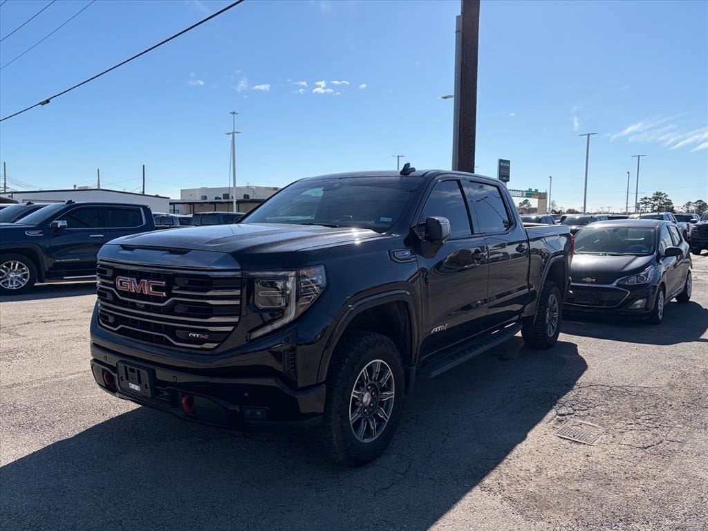 CARFAX One-Owner. Certified. Onyx Black 2024 GMC Sierra 1500 AT4 4WD 10-Speed Automatic EcoTec3 6.2L V8 AT4 Preferred Package (Power Sliding Rear Window w/Rear Defogger and Universal Home Remote), AT4 Premium Package (Off-Road High Clearance Step (LPO)), Preferred Equipment Group 4SB (120-Volt Bed Mounted Power Outlet, 120-Volt Interior Power Outlet, 2 Charge/Data USB Ports Inside Center Console, 2 Type-C Charge-Only Rear USB Ports, 2 USB Ports, 220 Amp Alternator, Auto-Locking Rear Differential, Black Chrome Header & Grille Insert Bars, Color-Keyed Carpeting Floor Covering, Deep-Tinted Glass, Electric Rear-Window Defogger, Floor-Mounted Center Console, Front Prem Floor Liners w/Removable Carpet Insert, Front Rain-Sensing Wipers, GMC Connected Access Capable, HD Surround Vision, Heated 2nd Row Outboard Seats, Heated Driver & Front Outboard Passenger Seating, Heavy-Duty Air Filter, Hill Descent Control, Hitch View, In-Vehicle Trailering System App, Integrated Trailer Brake Controller, Keyless Open & Start, LED Cargo Area Lighting, OnStar & GMC Connected Services Capable, Perimeter Lighting, Power Door Locks, Power Front Passenger Windows w/Express Up/Down, Power Front Windows w/Driver Express Up/Down, Power Rake & Telescoping Steering Column, Power Rear Windows w/Express Down, Premium Bose 7-Speaker Sound System, Push Button Start, Rear Cross Traffic Braking, Rear Pedestrian Detection, Rear Prem Floor Liners w/Removable Carpet Insert, Rear Wheelhouse Liners, Red Recovery Hooks, Remote Vehicle Starter System, SiriusXM w/360L, Spray-On Pickup Bedliner w/AT4 Logo, Steering Wheel Audio Controls, Theft Deterrent System (Unauthorized Entry), Trailer Camera Provisions, Trailer Side Blind Zone Alert, Ultrasonic Front & Rear Park Assist, Ventilated Driver & Front Passenger Seats, Wi-Fi Hotspot Capable, and Wireless Charging), Technology Package (Bed View Camera, Multicolor 15 Diagonal Head-Up Display, and Rear Camera Mirror), Trailering Package (Hitch Guidance), GMC Certified Pre-Owned Certified, 10-Speed Automatic, 4WD, Jet Black With Kalahari Accents Leather, Navigation System, 10-Way Power Driver Seat Adjuster w/Lumbar, 10-Way Power Passenger Seat Adjuster w/Lumbar, 170 Amp Alternator, 18 x 8.5 Machined Aluminum Wheels, 3.23 Rear Axle Ratio, 4-Wheel Disc Brakes, 7 Speakers, ABS brakes, Air Conditioning, Alloy wheels, AM/FM radio: SiriusXM with 360L, Apple CarPlay/Android Auto, Auto High-beam Headlights, Auto-dimming door mirrors, Auto-dimming Rear-View mirror, Automatic Emergency Braking, Automatic temperature control, Auxiliary External Transmission Oil Cooler, Block heater, Body Color Wheel Arch Moldings (LPO), Brake assist, Buckle to Drive, Bumpers: body-color, Compass, Delay-off headlights, Driver door bin, Driver Memory, Driver vanity mirror, Dual Active Exhaust, Dual front impact airbags, Dual front side impact airbags, Electronic Stability Control, External Engine Oil Cooling, Following Distance Indicator, Forward Collision Alert, Front anti-roll bar, Front Bucket Seats, Front Center Armrest, Front dual zone A/C, Front fog lights, Front License Plate Kit, Front Pedestrian Braking, Front reading lights, Front wheel independent suspension, Fully automatic headlights, GMC MultiPro Tailgate Step Lights (LPO), Heated door mirrors, Heated front seats, Heated rear seats, Heated steering wheel, Illuminated entry, IntelliBeam Automatic High Beam On/Off, Lane Keep Assist w/Lane Departure Warning, Low tire pressure warning, Memory seat, Occupant sensing airbag, Off-Road Suspension, Outside temperature display, Overhead airbag, Overhead console, Panic alarm, Passenger door bin, Passenger vanity mirror, Perforated Front Leather Seat Trim, Power door mirrors, Power driver seat, Power passenger seat, Power steering, Power Sunroof, Power windows, Premium audio system: GMC Infotainment System, Radio data system, Radio: Premium GMC Infotainment Audio System, Rain sensing wipers, Rear reading lig
