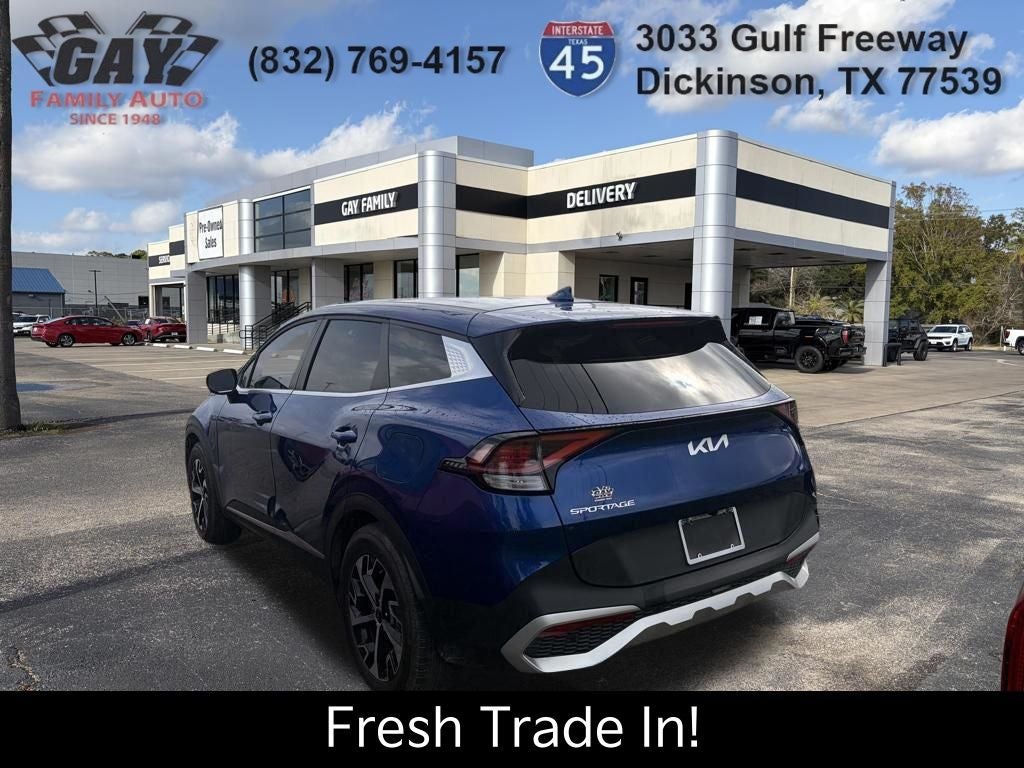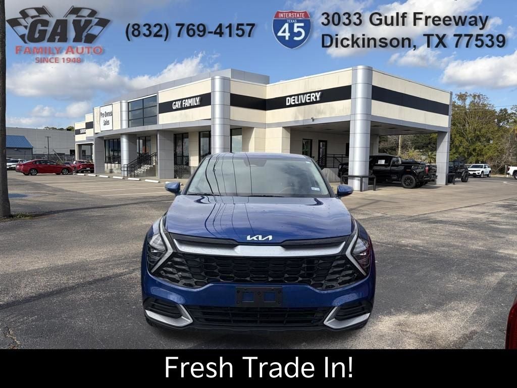CARFAX One-Owner. Clean CARFAX. Certified. Sapphire Blue 2025 Kia Sportage EX FWD 8-Speed Automatic I4 Kia Certified Pre-Owned Certified, 6 Speakers, Navigation System, 4-Wheel Disc Brakes, ABS brakes, Air Conditioning, Alloy wheels, AM/FM radio: SiriusXM, Apple CarPlay & Android Auto, Auto High-beam Headlights, Automatic temperature control, Brake assist, Bumpers: body-color, Carpeted Floor Mats, Compass, Delay-off headlights, Driver door bin, Driver vanity mirror, Dual front impact airbags, Dual front side impact airbags, Electronic Stability Control, Emergency communication system, Four wheel independent suspension, Front anti-roll bar, Front Bucket Seats, Front Center Armrest, Front dual zone A/C, Fully automatic headlights, Heated door mirrors, Heated Front Bucket Seats, Heated front seats, Illuminated entry, Leather Shift Knob, Leather steering wheel, Leatherette Seat Trim, Low tire pressure warning, Occupant sensing airbag, Outside temperature display, Overhead airbag, Overhead console, Panic alarm, Passenger door bin, Passenger vanity mirror, Power door mirrors, Power driver seat, Power steering, Power windows, Radio: AM/FM/HD Audio System, Rain sensing wipers, Rear anti-roll bar, Rear seat center armrest, Rear side impact airbag, Rear window defroster, Rear window wiper, Remote keyless entry, Security system, Speed control, Speed-sensing steering, Split folding rear seat, Spoiler, Steering wheel mounted audio controls, Tachometer, Telescoping steering wheel, Tilt steering wheel, Traction control, Trip computer, Turn signal indicator mirrors, Variably intermittent wipers, and Wheels: 18 x 7.5J Machined Alloy. 6 Speakers, Navigation System. Recent Arrival! Kia Certified Pre-Owned Details: