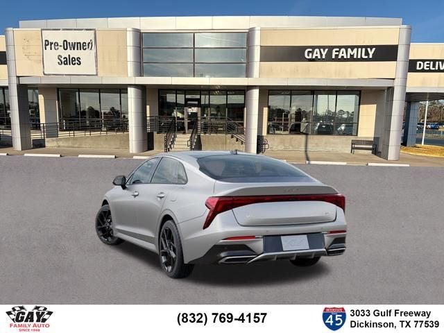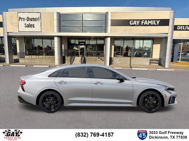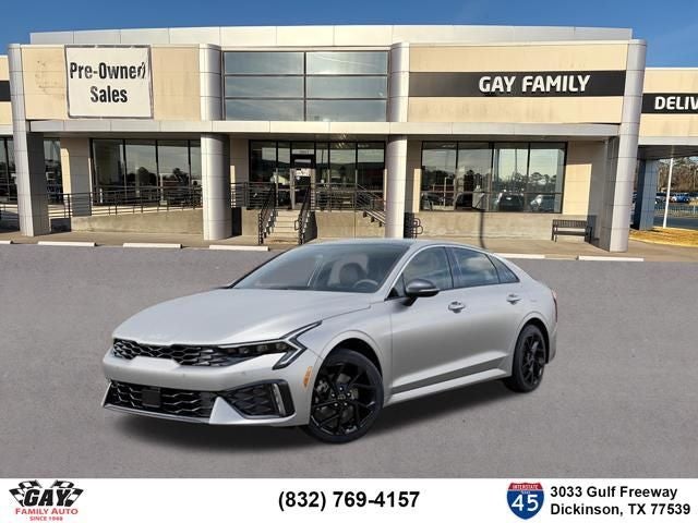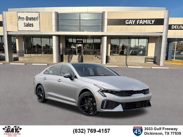 Steel Matte Gray 2026 Kia K5 GT-Line FWD 8-Speed Automatic I4 GT-Line Premium Package (Active Sound Design, Bose Premium Audio, LED Interior Lighting, Panoramic Sunroof, and Wheels: 18 x 7.5J Unique Gloss Black Alloy), GT-Line Red Interior Package (SynTex Seat Trim), 4-Wheel Disc Brakes, 6 Speakers, ABS brakes, Air Conditioning, Alloy wheels, AM/FM radio: SiriusXM, Auto High-beam Headlights, Automatic temperature control, Brake assist, Bumpers: body-color, Carpeted Floor Mats, Delay-off headlights, Driver door bin, Driver vanity mirror, Dual front impact airbags, Dual front side impact airbags, Electronic Stability Control, Emergency communication system: Kia Connect (includes 1 year free trial), Four wheel independent suspension, Front anti-roll bar, Front Bucket Seats, Front Center Armrest, Front dual zone A/C, Front fog lights, Front reading lights, Fully automatic headlights, Heated door mirrors, Heated Front Bucket Seats, Heated front seats, Illuminated entry, Knee airbag, Leather Shift Knob, Leather steering wheel, Low tire pressure warning, Navigation System, Occupant sensing airbag, Outside temperature display, Overhead airbag, Overhead console, Panic alarm, Passenger door bin, Passenger vanity mirror, Power door mirrors, Power driver seat, Power steering, Power windows, Radio data system, Radio: AM/FM Audio System, Rear anti-roll bar, Rear seat center armrest, Rear side impact airbag, Rear window defroster, Remote keyless entry, Security system, Speed control, Speed-sensing steering, Split folding rear seat, Sport steering wheel, Steering wheel mounted audio controls, Tachometer, Telescoping steering wheel, Tilt steering wheel, Traction control, Trip computer, Turn signal indicator mirrors, Variably intermittent wipers, Wheel Locks, and Wheels: 18 x 7.5J Gloss Black Machined Finish Alloy.
